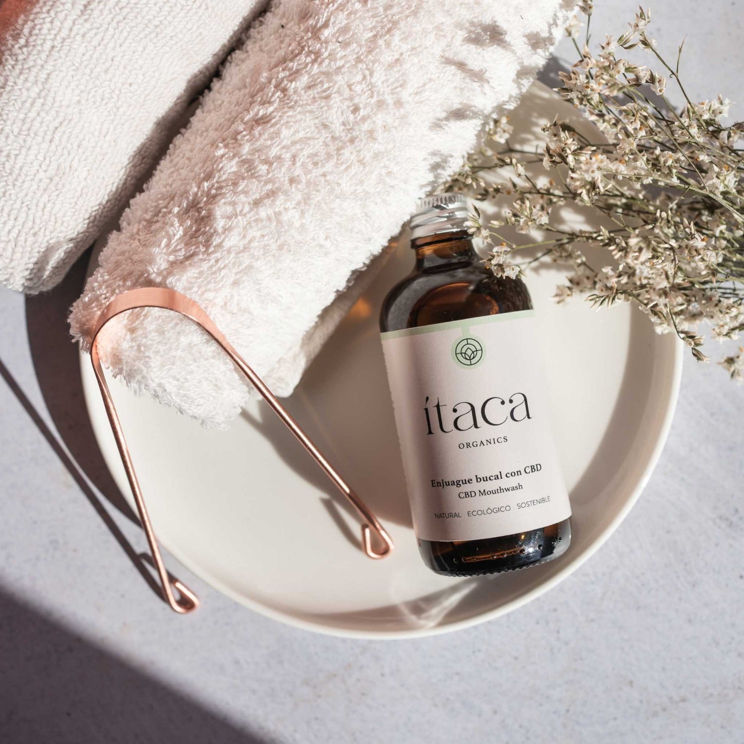 El Enjuague Bucal Ítaca Organics con CBD contiene 99,95% de ingredientes ecológicos certificados.